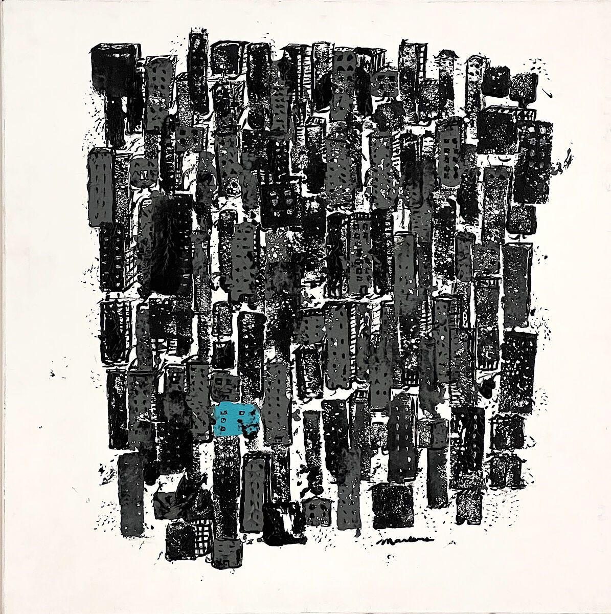 Acrylic on canvas. Measures 36 inches in width by 36 inches in height.