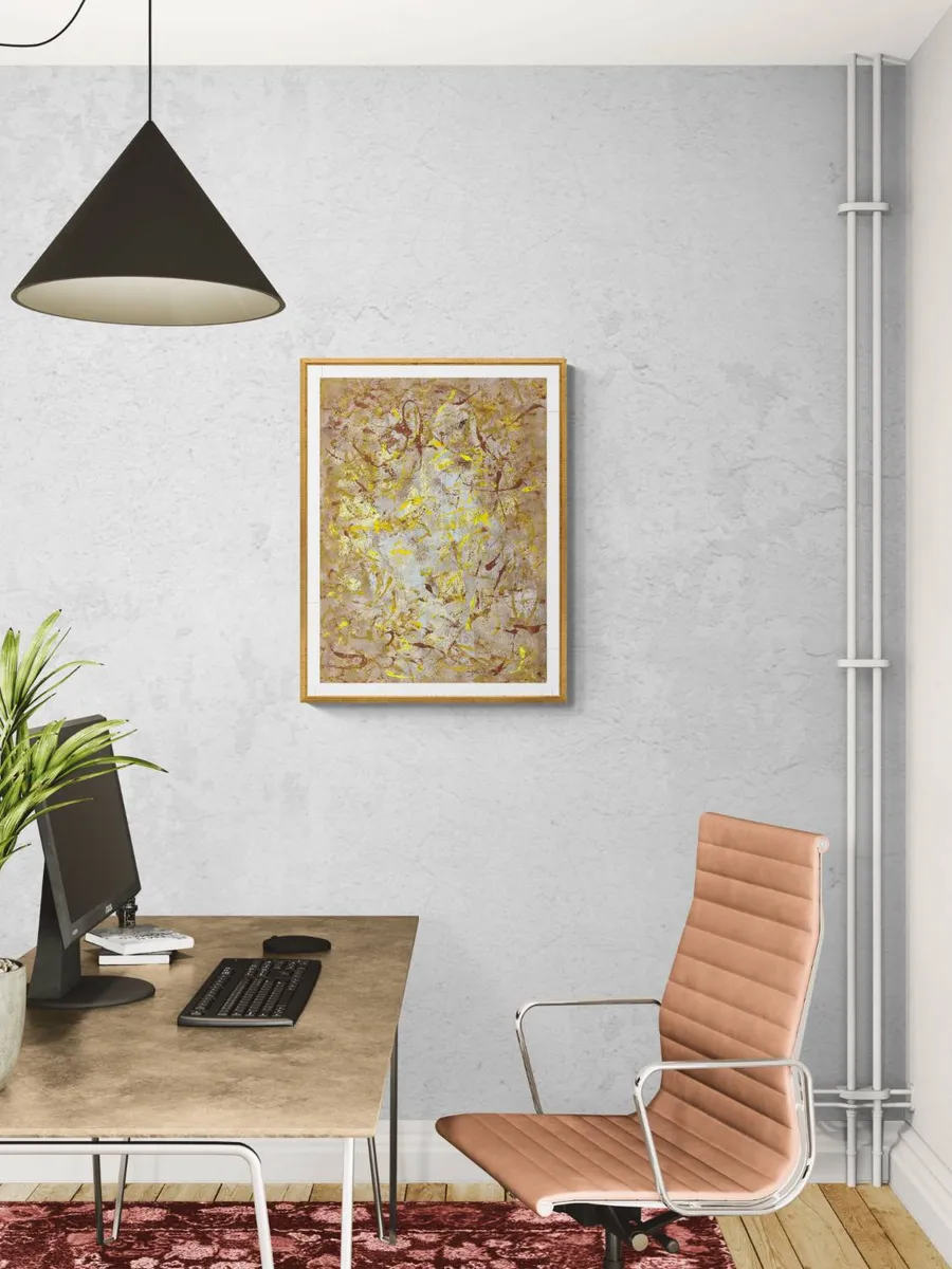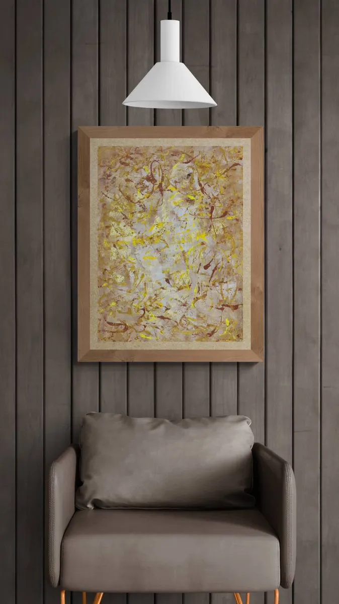 Golden Silence is an abstract exploration of balance between movement and stillness. Earthy textures blend with vibrant golden strokes, creating a visual rhythm that evokes both warmth and quietude. This one-of-a-kind piece brings a calming yet radiant presence to any space. Painted using high-quality acrylic on canvas, this work reflects a deep emotional state – like sunlight filtering through thought. A perfect addition to interiors that value minimalism, spirituality, or earthy elegance. ✨ Personal connection: Yellow symbolizes clarity, intellect, confidence, and light. For Western audiences: evokes sunlight, optimism, creativity – ideal for workspaces or meditative rooms. In Eastern symbolism: yellow relates to the metal element (Kim) – enhancing prosperity, focus, and emotional grounding. Well-suited for people born under Leo or Virgo, or anyone seeking warmth, direction, and harmony. You’re not just acquiring a painting – you’re choosing a visual frequency that resonates with who you are.